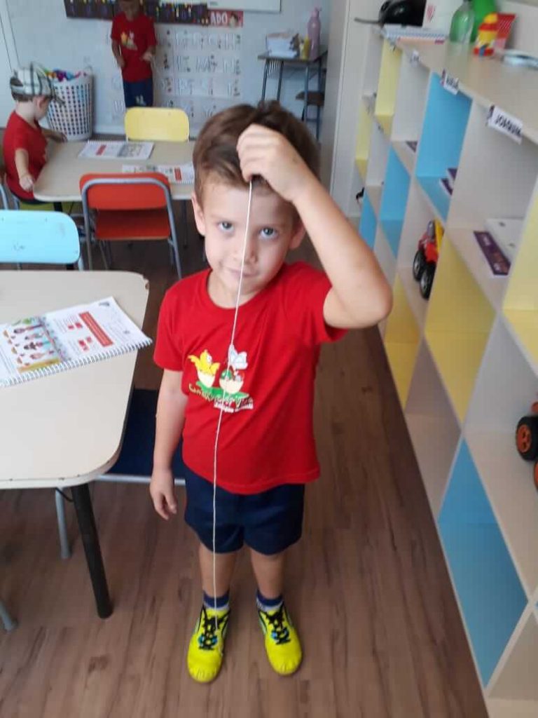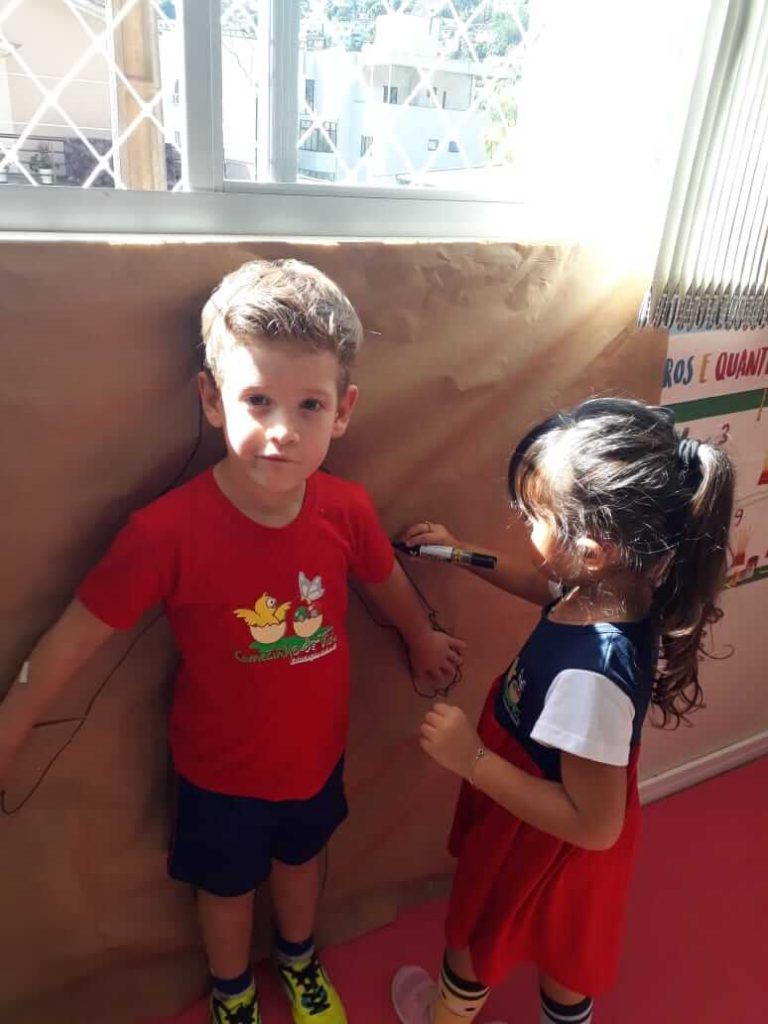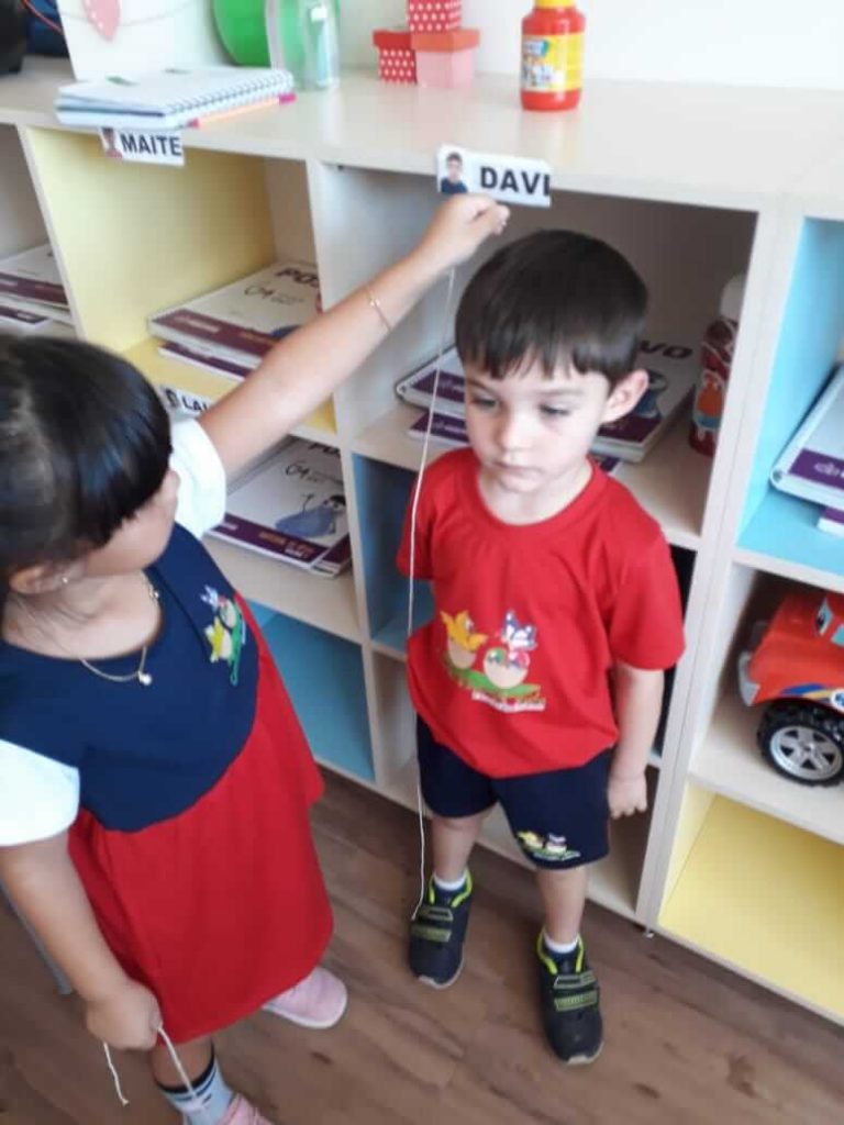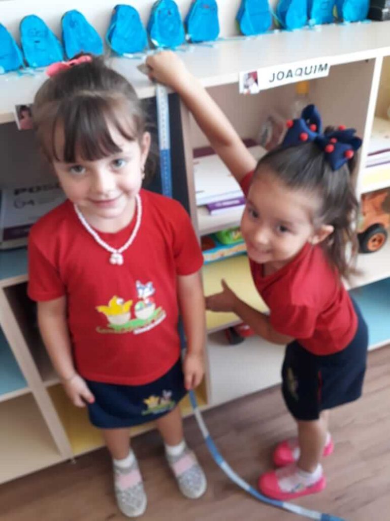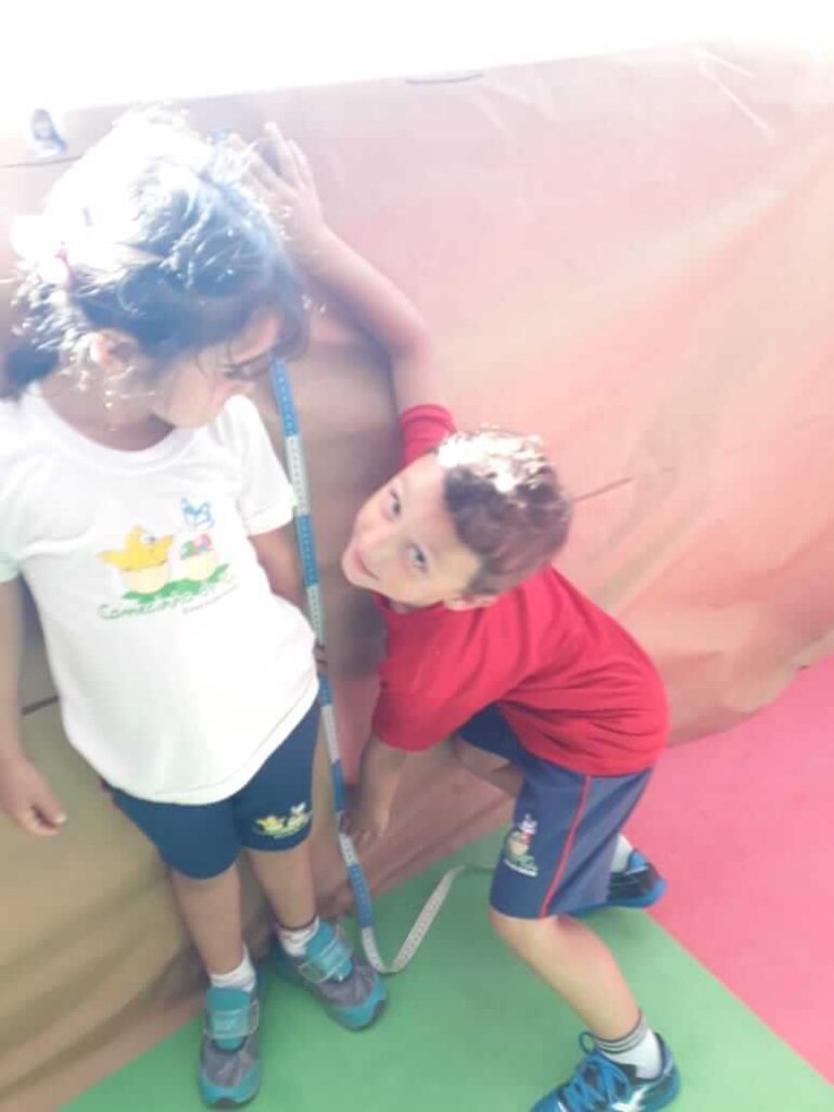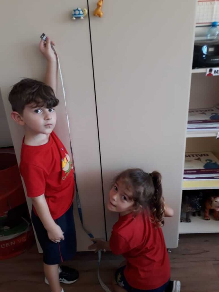 As crianças do Grupo 4 da Professora Cristiane aprenderam brincando, utilizando a fita métrica!