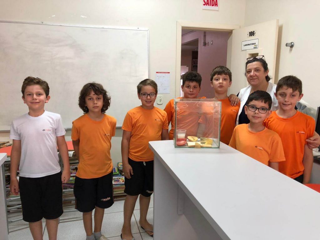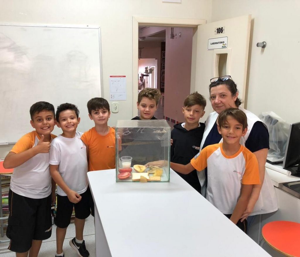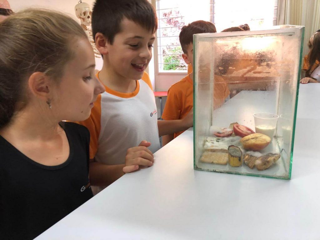 A turma do 4º ano da Professora Sandra está estudando sobre os ecossistemas e nesse universo de seres vivos os alunos vivenciaram uma experiência sobre o desenvolvimento de fungos e bactérias em alimentos.